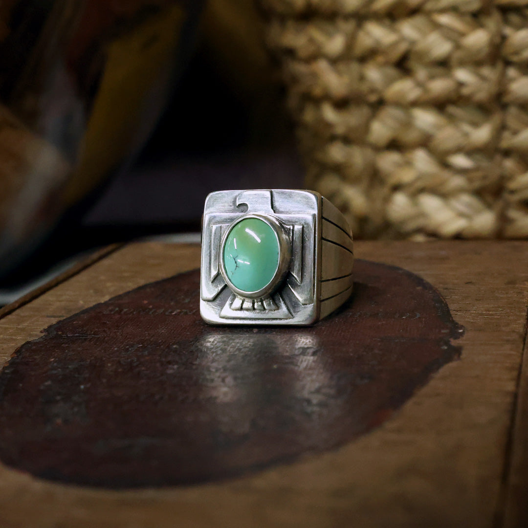 Hand made, custom Eagle Ring for BIA. Size 9. Sterling Silver & Hubei Turquoise.